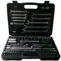 КомплектацияПосадочный размер 1/4":Головки Super Lock (увеличенная площадь контакта):13 коротких шестигранных головок 1/4": 4, 4.5, 5, 5.5, 6, 7, 8, 9, 10, 11, 12, 13, 14 ммАдаптер для бит 1/4x1/4(тип С) (длина 25 мм) - подходит для работы с воротками, которые поставляются в комплекте и маленькими битами типа C (в комплекте нету)Головки-биты (17 предметов, длина – 32 мм)Шестигранные (HEX): 3, 4, 5, 6 ммШлицевые (SLOTTED): 4, 5.5, 7 ммЗвездочка (TORX): T8, T10, T15, T20, T25, T30Крестовые (PHILLIPS): PH1, PH2Крестовая с доп. насечками (POZIDRIV): PZ1, PZ2Трещотка 1/4" (длина 150 мм) – инструмент с трещоточным приводом ускоряет и облегчает процесс работы с крепежом, а так имеется функция реверса. Имеет 45 зубцов, с шагом в 5 градусов и функцию быстрый сброс.Вороток-отвертка (отверточная рукоятка) 1/4” (длина 150 мм) – инструмент в форме отвертки позволяет контролировать усилие, прикладываемое к крепежу.Т-образный вороток 1/4" (115 мм) - инструмент используется для передачи крутящего момента на торцевую головку, за счет чего достигается их вращение.Удлинитель 1/4" (2 предмета): 50, 100 мм – приспособление для работы в труднодоступных местахКарданный шарнир 1/4" (длина 43 мм) - он позволяет передавать вращательное движение под разными углами, что делает его незаменимым при работе в труднодоступных местах.Гибкий удлинитель (длина 145 мм) - приспособление для работы в труднодоступных местах, позволяет работать под разными углами.Посадочный размер 1/2":Головки Super Lock (увеличенная площадь контакта):12 коротких шестигранных головок 1/2": 13, 14, 15, 16, 17, 18, 19, 22, 24, 27, 30, 32 ммШестигранные (HEX): 8, 10, 12, 14 ммЗвездочка (TORX): T40, T45, T50, T55Шлицевые (SLOTTED)Крестовая (PHILLIPS)Крестовая с доп. насечками (POZIDRIV)Адаптер 3/8”(F)x1/2(M)Держатель бит 1/2"DRx5/16” (длина 40 мм) - подходит для работы с воротками, которые поставляются в комплекте и битами (в комплекте есть)Трещотка 1/2” (длина 260 мм) - инструмент с трещоточным приводом ускоряет и облегчает процесс работы с крепежом, а так имеется функция реверса. Имеет 45 зубцов, с шагом в 5 градусов и функцию быстрый сброс.Карданный шарнир 1/2" (длина 70 мм) - он позволяет передавать вращательное движение под разными углами, что делает его незаменимым при работе в труднодоступных местах.Удлинитель 1/2" (2 предмета): 125, 250 мм - приспособление для работы в труднодоступных местахСвечные головки 1/2” (2 предмета) (длина 60 мм): 16, 21 мм - предназначена для монтажа/демонтажа свечей зажигания в автомобиле и другой техники. Имеется резиновая вставка, обеспечивающая удержание детали во время установки и извлечения из свечного колодца, а также предотвращающей риск повреждения изолятора при выкручивании и затяжке свечи.Комбинированные ключи (U-форм-фактор, O-форм-фактор; 9 предметов): 8, 10, 11, 12, 13, 14, 15, 17, 19 мм