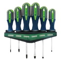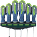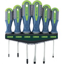 КомплектацияНабор отверток, CrV трехкомпонентные рукоятки:- SL6 x 100 мм- SL5 x 100 мм- SL3 x 75 мм- PH0 x 75 мм- PH1 x 75 мм- PH2 x 100 мм