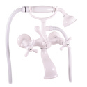 Назначение: ванна+душ • Конструкция: с раздельными клапанами • Монтаж: вертикальный • Материал: покрытие - хром • Подводка: жесткая • Монтажные отверстия: 2 отверстия • Форма излива: традиционная • Душевая лейка в комплекте: есть • Держатель для душевой лейки: на смесителе • Донный клапан в комплекте: есть