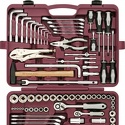 Набор: 101 шт • Ключи: комбинированные, разрезные, разводной • Головки: 6-ти гранные головки, головки E-профиль, свечные • Ключей-трещоток: 2 шт • Хранение: пластиковый кейс