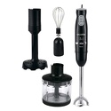 Тип: погружной (ручной) блендер • Мощность: 400 Вт • Скорости: 2 шт, импульсный • Насадки: ножка, венчики, нож для измельчителя • Дополнительно: для пюре