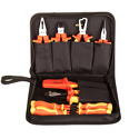 Комплект для полного цикла операций профессионального электрика. Набор сертифицирован немецкими стандартами качества VDE и GS. Знак VDE (Verband Deutscher Elektrotechniker) является документальным подтверждением безопасности электроинструмента. Инструменты предназначены для работ под напряжением до 1000В за счёт специальных сталей, материала рукояток TPE. Диэлектрические ШГИ изготовлены из хром-никелированной стали марки 55 с двухсторонней полировкой и 2-этапным процессом электрофорезификации.