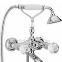Назначение: ванна+душ • Конструкция: с раздельными клапанами • Монтаж: вертикальный • Клапан: керамический • Материал: латунь, покрытие - двухцветный • Монтажные отверстия: 2 отверстия • Форма излива: традиционная • Душевая лейка в комплекте: есть • Держатель для душевой лейки: на смесителе • Донный клапан в комплекте: есть