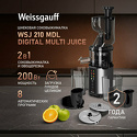 Производитель: Weissgauff Модель: WSJ 210 MDL Digital Multi Juice - 200 Вт - шнековая - отверстие для загрузки: 80 мм Описание