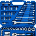 Набор: 82 шт • Головки: 6-ти гранные головки, свечные • Ключей-трещоток: 2 шт • Хранение: пластиковый кейс