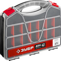 Производитель: ЗУБР Модель: 38036-42 - Тип: органайзер - Отделений: 42 шт - Габариты: 320х260х70 мм - Материал: пластик Описание
